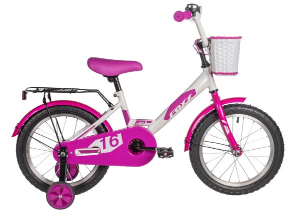 Велосипед FOXX 16" SIMPLE белый, сталь, тормоз нож, крылья, багажник, полная защ.цепи, передняя корз