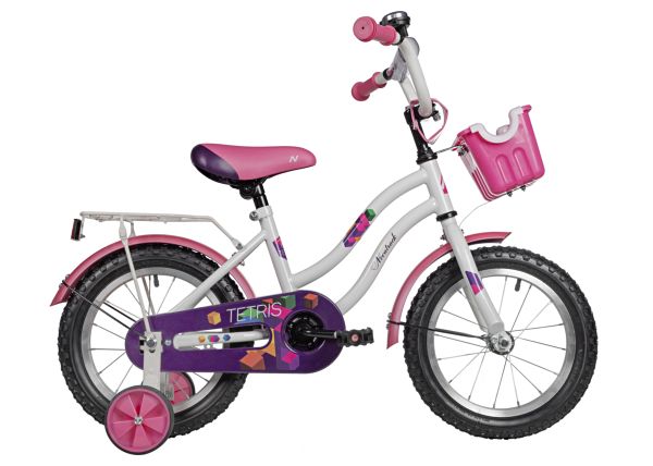 Велосипед NOVATRACK 14" TETRIS белый, тормоз нож, крылья цвет, багажник, корзина, полная защ.цепи