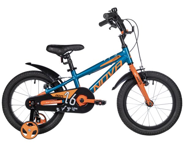 Велосипед NOVATRACK 16" EXTREME алюм., бирюзовый, полная защ.цепи, V-brake, короткие крылья, полная