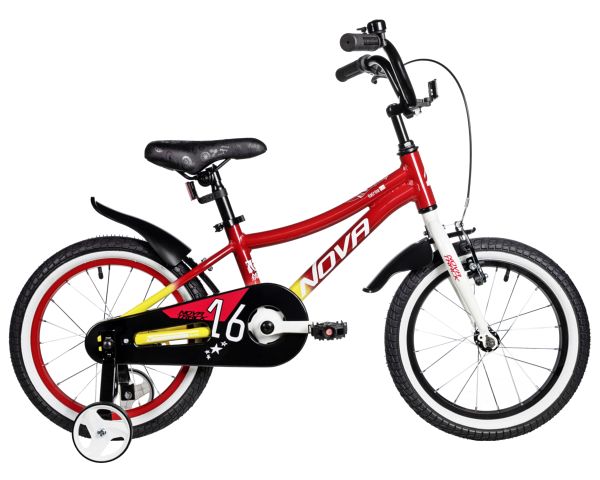 Велосипед NOVATRACK 16" KATRINA алюм., красный-жёлтый, полная защ.цепи, пер.руч., зад.нож. тормоз, к