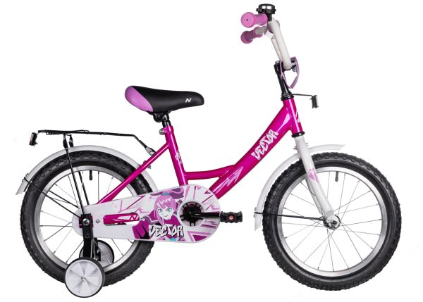 Велосипед NOVATRACK 16", VECTOR, фуксия, полная защита цепи, тормоз нож., крылья, багажник