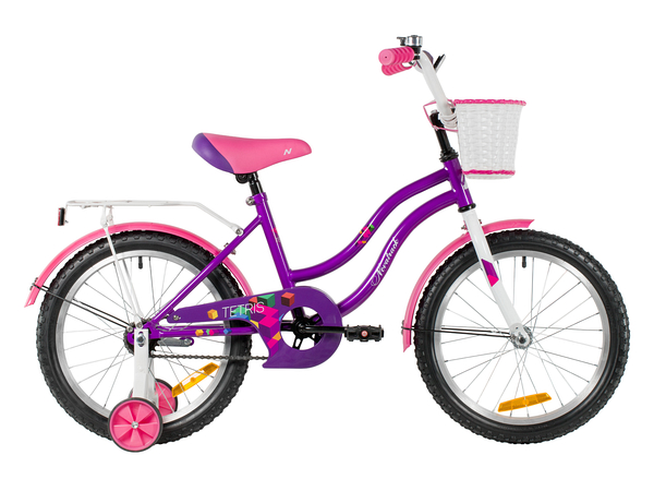 Велосипед NOVATRACK 18" TETRIS фиолетовый, тормоз нож, крылья цвет, багажник, корзина, полная защ.це