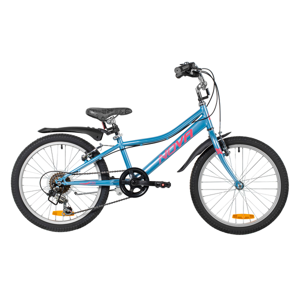 Велосипед NOVATRACK 20" ALICE голубой, стальная рама, 6 скор., Shimano TY21/Microshift TS38, V- bra