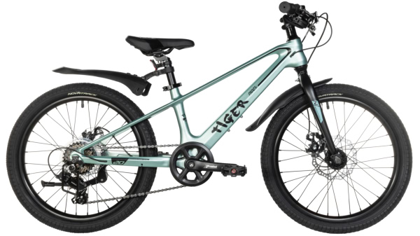 Велосипед NOVATRACK 20" TIGER, магниевая.рама, светло-зелёный, 6-скор, TY21/TS38, диск.тор.STG