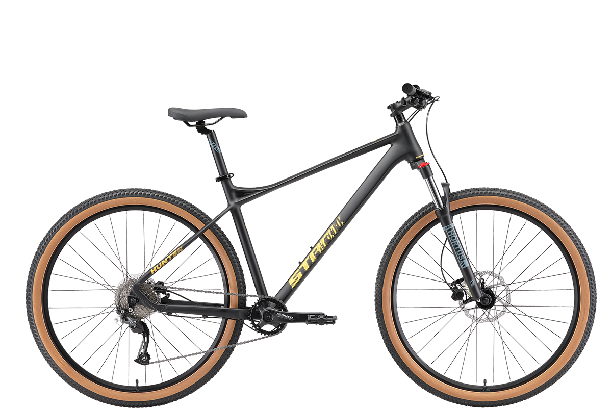 Велосипед Stark'25 Hunter 29.3 HD черный матовый/теплый желтый M/17.5"