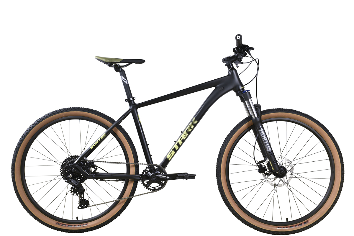 Велосипед Stark'25 Router 27.4 HD черный матовый/оливково-желтый L/20"